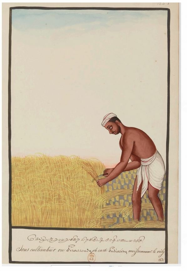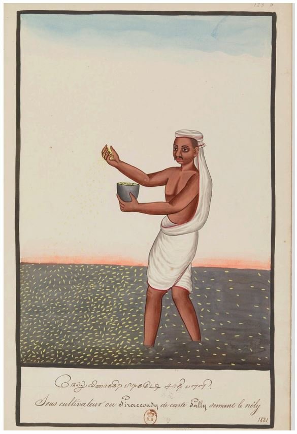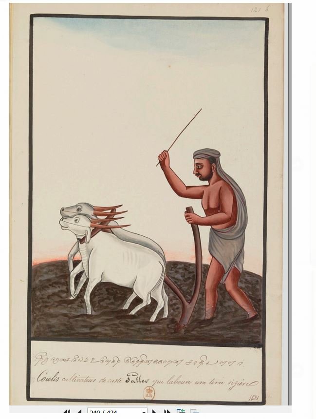 பிரெஞ்சு அரசாங்கம் , 150 ஆண்டுகளுக்கு முன்பு, தமிழ் நாட்டில் உள்ள சாதி மக்களையும்,அவர்களின் தொழில் முறைகளையும் ஓவியங்களாக “இந்தியாவில் உள்ள தொழில் சார்ந்த சாதி மக்கள்” என்ற நூலில் தொகுத்து , பிரான்ஸ் , பாரிஸ் நகரில் உள்ள பெரிய மத்திய நூலகத்தில் வைத்து உள்ளார்கள்.. அந்த காலத்தில் புகை படங்கள் எடுக்கும் வசதி இல்லாததால், அதை நல்ல ஓவியங்களாக தீட்டி அதை ஒரு நூலக வைத்து உள்ளார்கள்.. பதிவு செய்த காலங்கள் 1820க்கும் – 1891 இடை பட்ட காலங்கள இருக்கலாம்,…அதில் தமிழகத்தில் உள்ள பல தரப்பட்ட சாதி மக்களின் தொழிலை பதிவு செய்து உள்ளார்கள்.. பள்ளர்கள் , நெல் வயலில் வேலை செய்வராக காட்டி உள்ளார்கள்.. பள்ளி, படையாச்சி மக்களை, நெல் அறுக்கும் ஆட்களாகவும், விவசாய கூலியாகவும் காட்டி உள்ளார்கள் ( பள்ளர்களுக்கும், பள்ளி, படையாச்சி இருவரும் ஒரே தொழிலை செய்து வருவராக காட்டி உள்ளார்கள் இந்த நூலின் படி)..