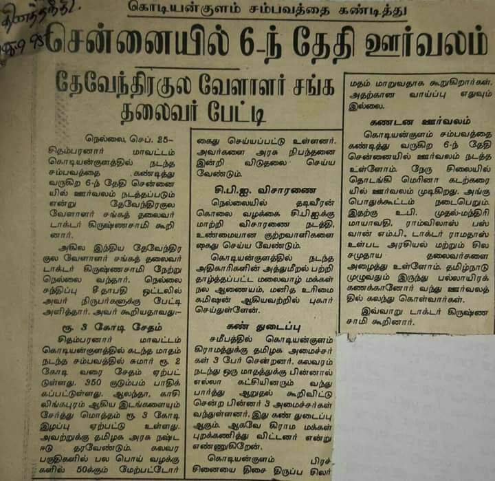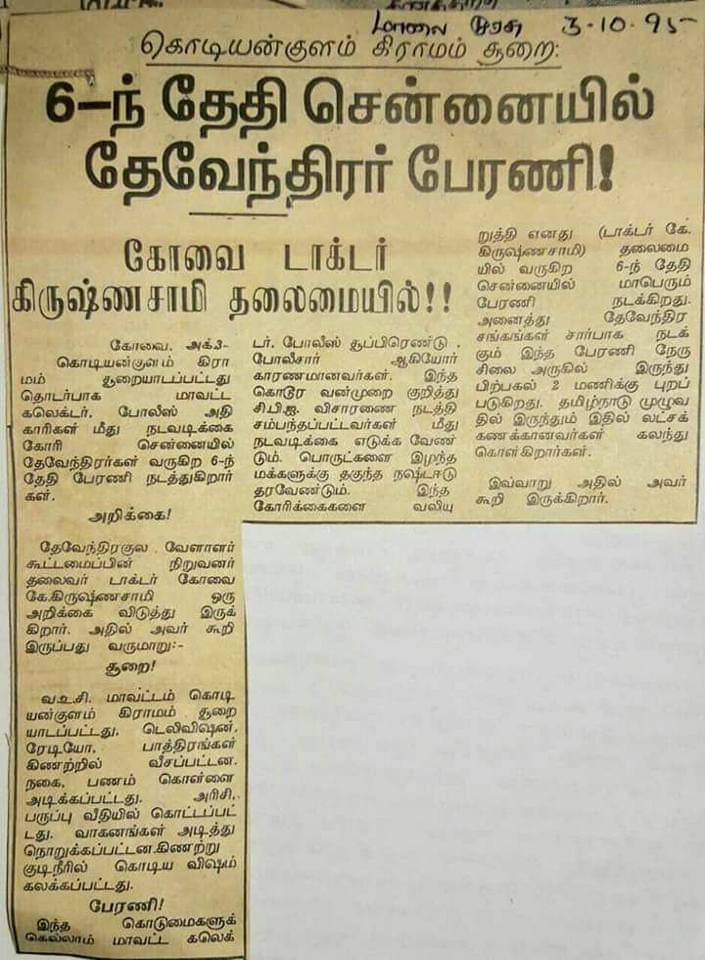 Devendra Kula Vellalar Dr Krishnasamy Puthiya Tamilagam கொடியன்குளம் கலவரம்